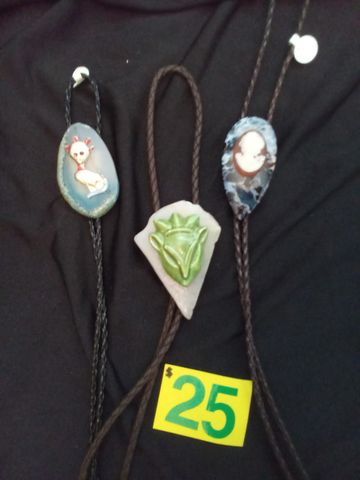 I will add some pics of the ties I have now, message me for info or single pics for any of them, unless they have sold........Let me know which group and I can send more info. please message me about any bolo pic you see here. during market season they do sell quick and I try my best to keep pics updated.....sometimes I do miss some sold ones. so please ask me...thanks
